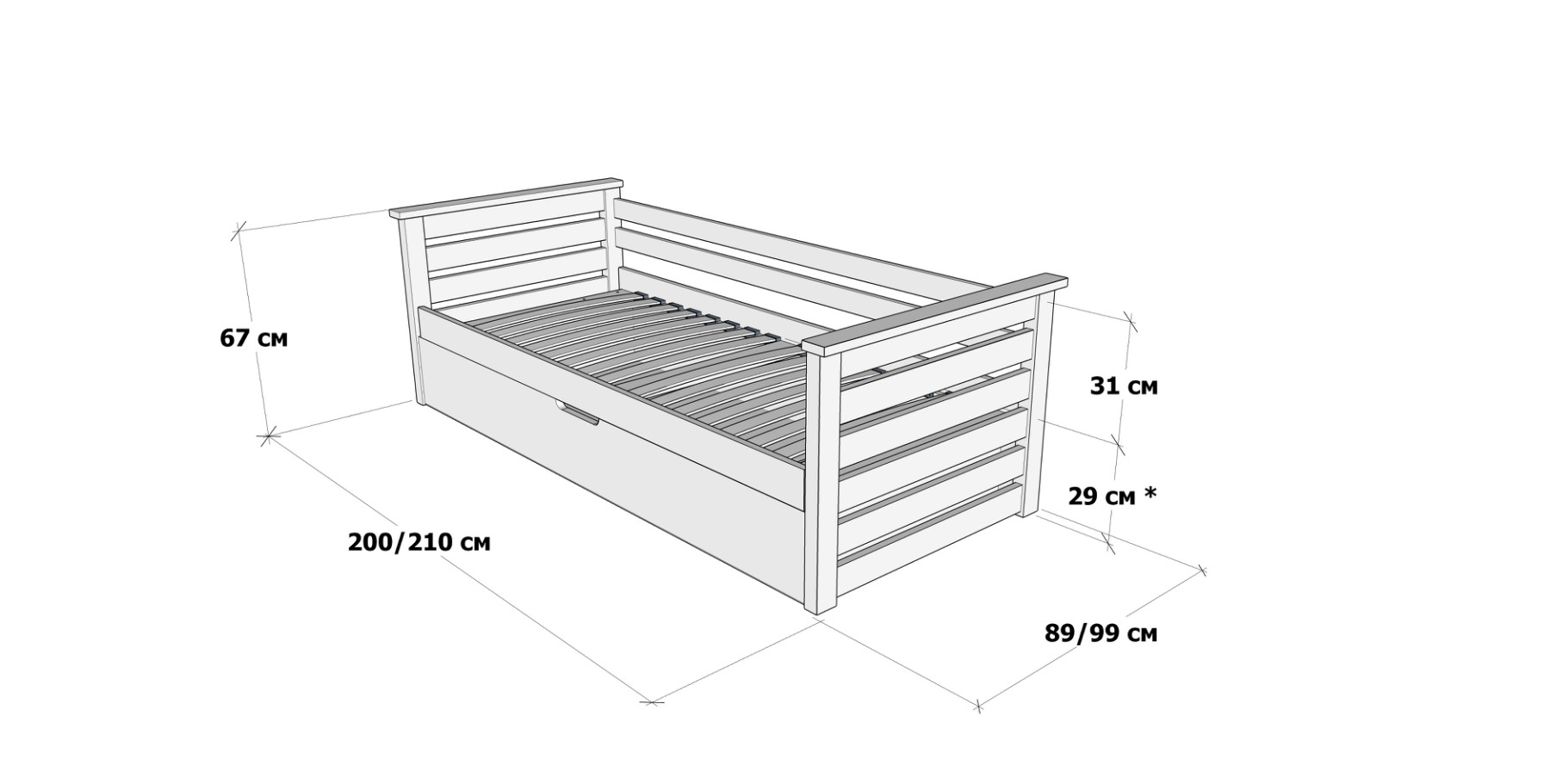 Габарити ліжка - 89 або 99х200/210