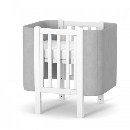 - зйомні зовнішні чохли бокових стінок ліжечка виготовлені з м`якого велюру, тактильно схожого на замшу - комфортного і приємного на дотик; тканина гіпоалергенна, зносостійка, з високим ступенем вологостійкості, склад - 100% PES; наповнювач - еластична піна; чохол оздоблений широким двострочним міцним швом; особливості догляду: суха чистка;