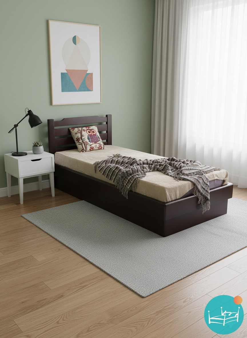Особливості дерев'яного ліжка з підйомним механізмом та ламельним основанням: